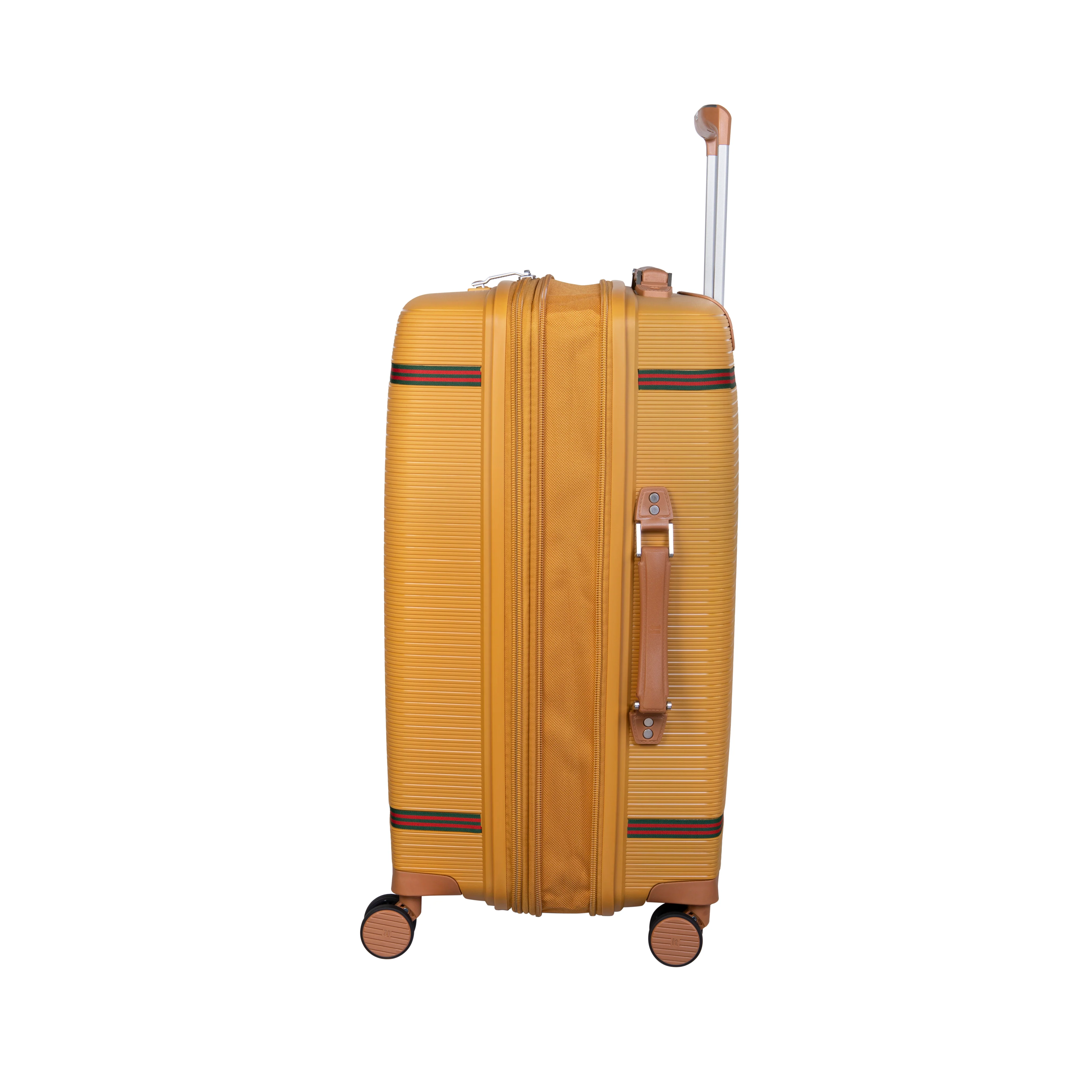 The Advantageous style combines a stylish ribbed-effect design, decorated with a green & red webbing, alongside the almond trim with innovative features including a Travel Sentry® approved combination lock for enhanced security.