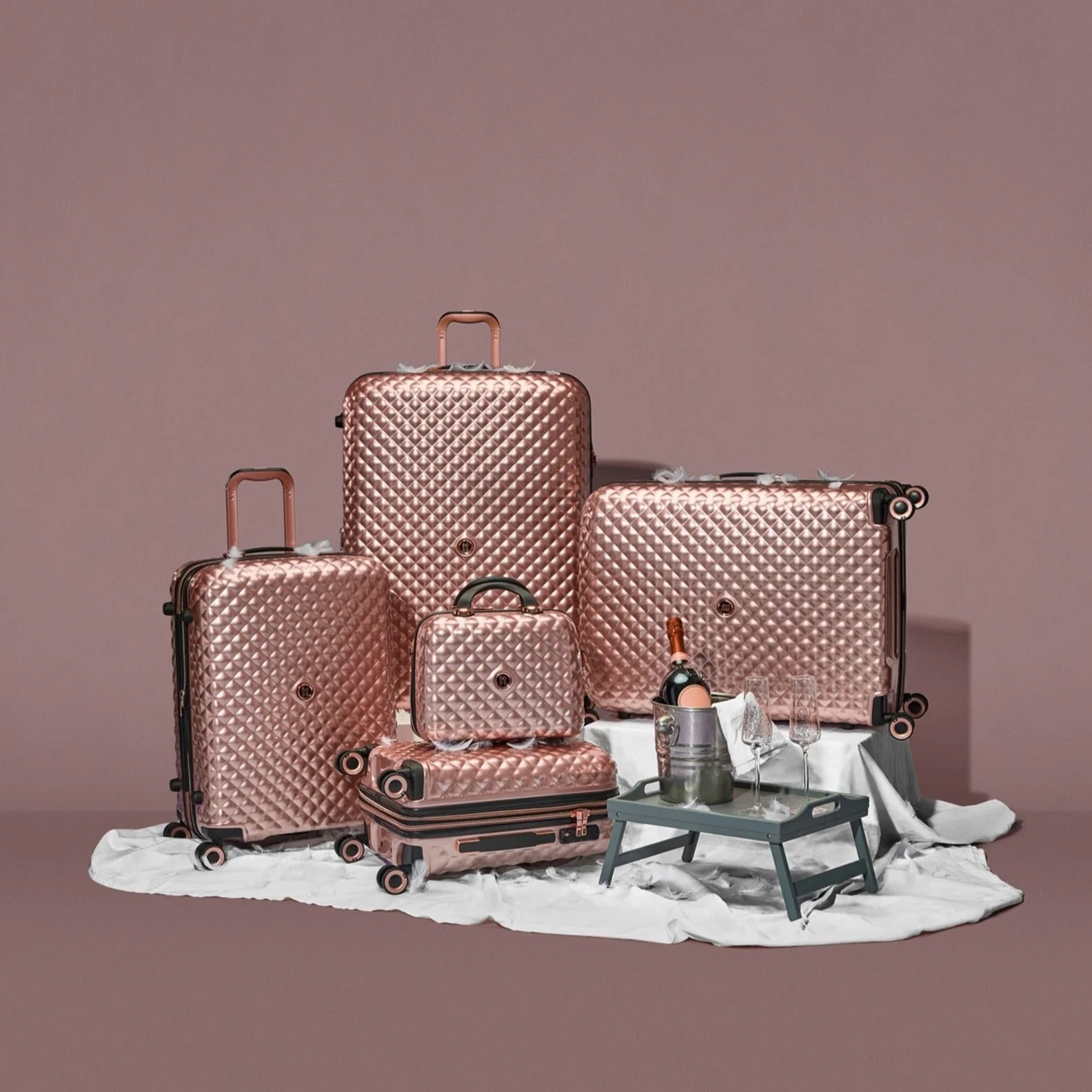 It’s time to pack your party outfits and turn your travel style up a notch! Our Large Glitzy Suitcase combines ultra-stylish design, with impact-proof PC outer, offering you the ultimate luggage protection. Glide through the airport with a touch of glamour, as the quilted high-shine outer shell dazzles whilst treating your clothes to luxury surrounded by a leopard print interior.